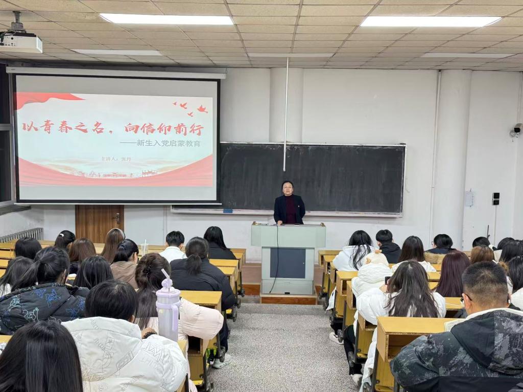会上,张丹书记围绕什么是中国共产党、申请入党基本条件、正确入党动机的树立、规范的入党流程等内容,系统讲解了党员发展工作的具体要求。她强调,入党绝非单纯的荣誉象征,更是一份需要终生坚守与践行的责任和承诺。同时,她鼓励新生以此次启蒙教育为起点,将个人成长与国家发展需求紧密结合,主动学习党的创新理论,积极参与党组织相关活动,在实践中不断深化对党的认识,用青春力量为实现中华民族伟大复兴的中国梦贡献外语学子的智慧与担当。