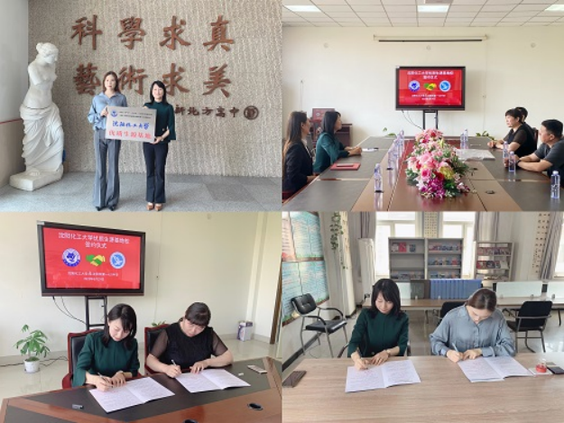 座谈会上,崔晗对我校人才培养、师资队伍、近年招生就业情况进行了简要介绍,她表示,希望学校之间能够建立长久友谊,搭建更优质的平台,为师生创造更为广阔的学习和发展空间。随后,双方共同签署了《沈阳化工大学优质生源基地建设协议书》并举行了授牌仪式。授牌仪式结束后,崔晗为部分同学作了题为“外语学习与跨文化交际”讲座,希望同学们能够将外语学习与专业知识相结合,加强跨文化交流,同时也欢迎同学们能够走进化大、了解化大、融入化大。